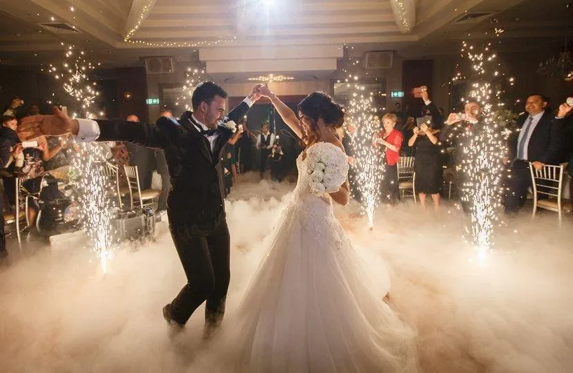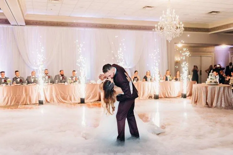 Transform your special day into a dreamy wonderland with our breathtaking Dancing on Clouds effect. Our low-lying fog creates a stunning visual display, adding a touch of magic to your wedding or event. Impress your guests with a breathtaking dance floor floating above a sea of clouds. With a simple setup and stunning result, this effect is sure to leave a lasting impression. Book now and let us bring your vision to life!
